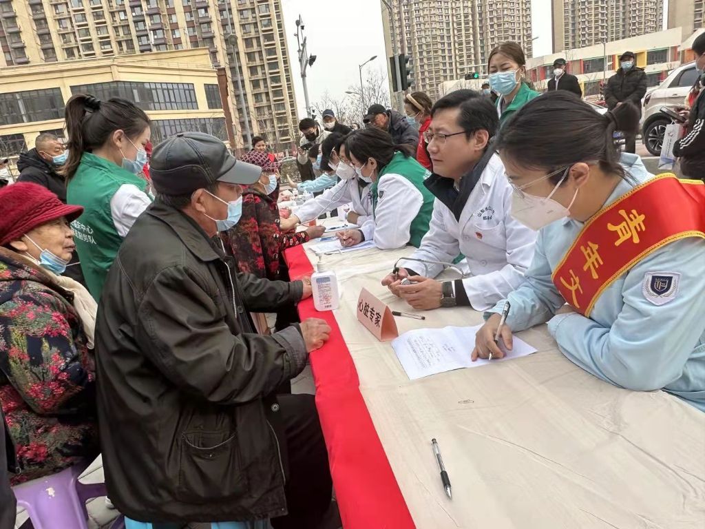 本次活动特邀山东省公共卫生临床中心医护人员前来出诊,结合实际需求,义诊项目包括:血氧、血糖、血压测量、心电检测等检查项目,出诊医生为前来参加的老年人提供面对面、零距离的义诊和咨询服务。现场医务人员也通过检测结果询问老年人详细的身体状况、对于老人的用药等等给出建议,社工在旁用纸记下,并叮嘱老人牢记医生的嘱托,纸条可交由家中子女,由子女督促老年人对于药品的服用,帮助老人避免产生药物依赖等副作用。在此期间社工、志愿者帮助老人进行信息登记、搀扶行动不便的老人做好各项检查并记录。检查过后,社工提醒老人要养成良好习惯,询问前来参加义诊的老年人“阳康”前后身体明显的变化,并协助他们填写问卷,对于身体明显不适变化的老年人社工留下其个人信息,表示会与他们保持联系。最后,社工告诉老人要定期做检查,努力做到疾病早发现、早治疗、早康复。