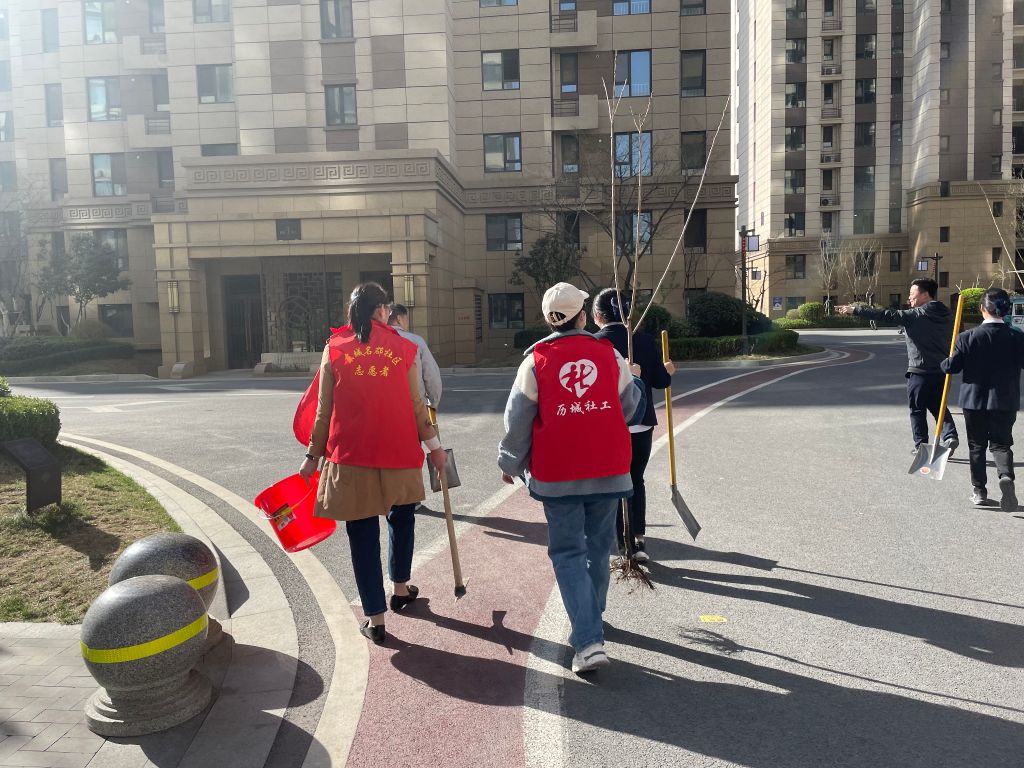春天来临,一年一度的植树节也随着春天的脚步走来。为进一步美化社区环境,学习绿色知识,亲近自然,共建绿色环保社区。3月10日上午,郭店街道社工站在东城名郡社区内开展“绿色家园,爱心同行”植树活动。