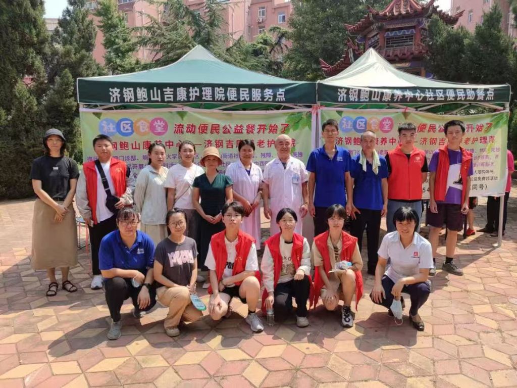 为满足周边居民用餐需求,关爱长者和新业态群体等,秉承着助老、助残、助困,方便社区居民的服务理念,鲍山街道社工站联合贤德社区和济钢康养中心,共同打造了“社区食堂”,为居民提供的经济实惠用餐场所。8月24日,首期“社区公益老人餐”活动,在辖区35号楼广场举办。