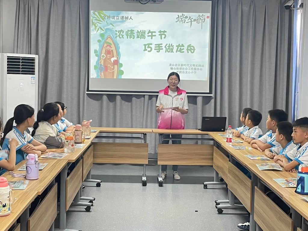“五月五,过端午……”端午节,又称端阳节、重五节、午日节、五月节等,是中国民间传统节日之一。为了进一步弘扬中华民族优秀传统文化,培养孩子们的爱国情怀和对中国传统文化的兴趣,6月20日下午,榆山街道社工站联合龙山社区组织龙山小学的学生在小候鸟课堂举办“浓情端午节,巧手做龙舟”端午节手工制作主题活动。