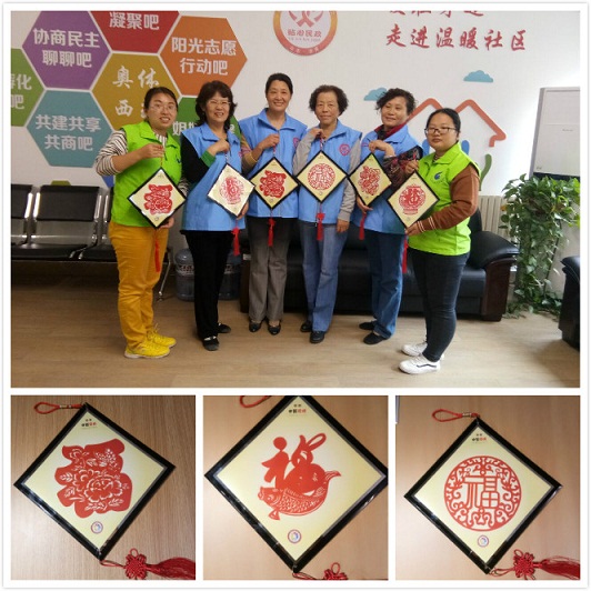 奥体西苑剪之韵民俗社提前为重阳节走访剪出来一幅幅福字作品,精美的作品为老人增添节日的祝福。