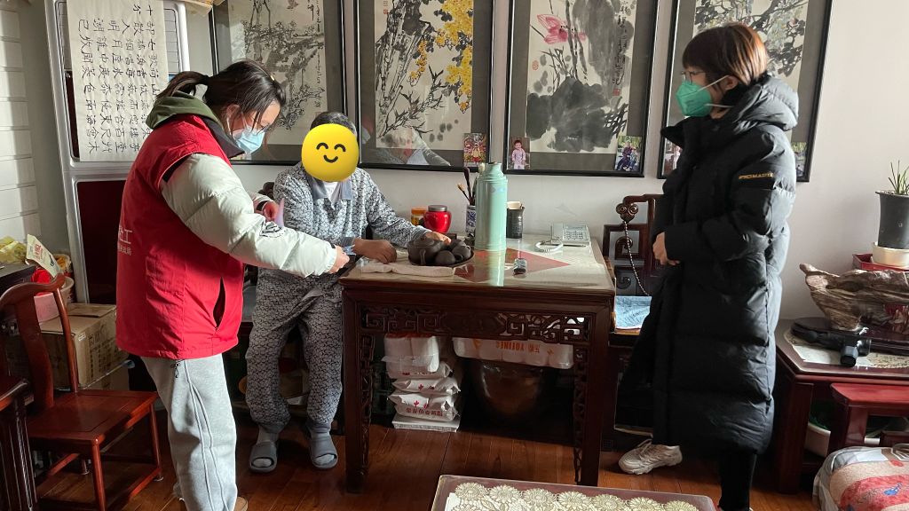 社工与居委会书记走访老党员