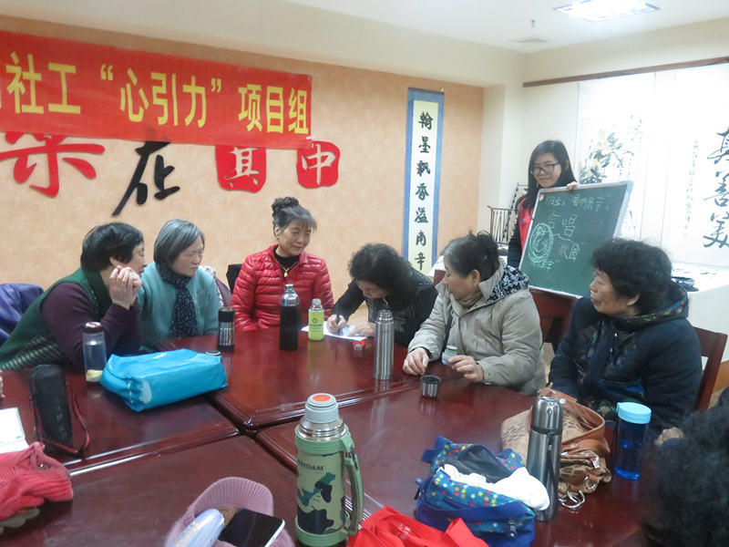 鉴于天气原因,合唱小组的二十余人到场十四人,但骨干人员均已到场,符合开设小组的基本条件。活动开场,社工重申了小组的开设目的与社工职能,引导小组成员进一步熟识;“头脑风暴”—社工引导小组成员共同探讨合唱小组的名字,推举合唱小组的职能负责人,如团长、副团长、考勤员、指挥等,在小组积极踊跃的讨论之下确定了“辛随缘”合唱团的名字和小组骨干成员承担各自的应尽之责;最后,合唱小组就之前开展活动中存在的一些问题加以讨论并达成共识,小组成员在“宽容、和谐、共进”的氛围下完成了第一次小组活动。