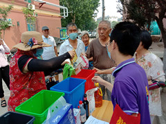 7月6日上午9点,槐村街社区68号院内,又出现了一群熟悉的紫衣青年,他们走街串巷,拿笔记分,社区居民环环围着他们,又满心欢喜。原来,这是社工们在开展垃圾分类的活动。为了让居民更加积极的参与到垃圾分类中来,社区内展开了积分兑换活动。如果您能正确的分类投放垃圾,便能按照次数获得相应的积分,通过积分多少也可以兑换相应的生活用品。垃圾也能扔出价值。