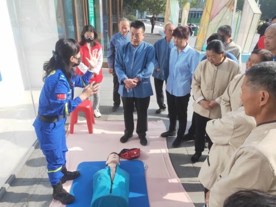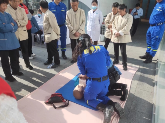 除了健康检查和咨询服务,社工站还联合蓝天救援队为清洁工提供了紧急援助和安全指导。蓝天救援队的志愿者向清洁工传授了心肺复苏基本救援技能,并进行现场实际操作,帮助他们提高面对突发事件时的自救和互救能力。