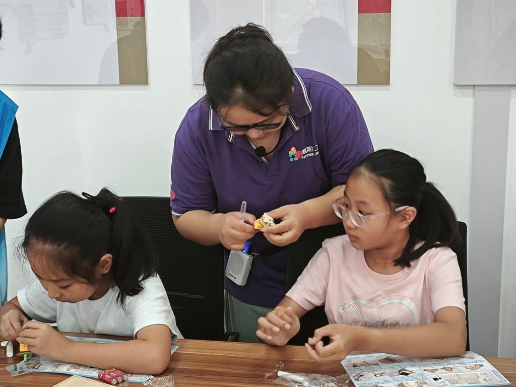 图2 社工指导儿童制作感应垃圾桶