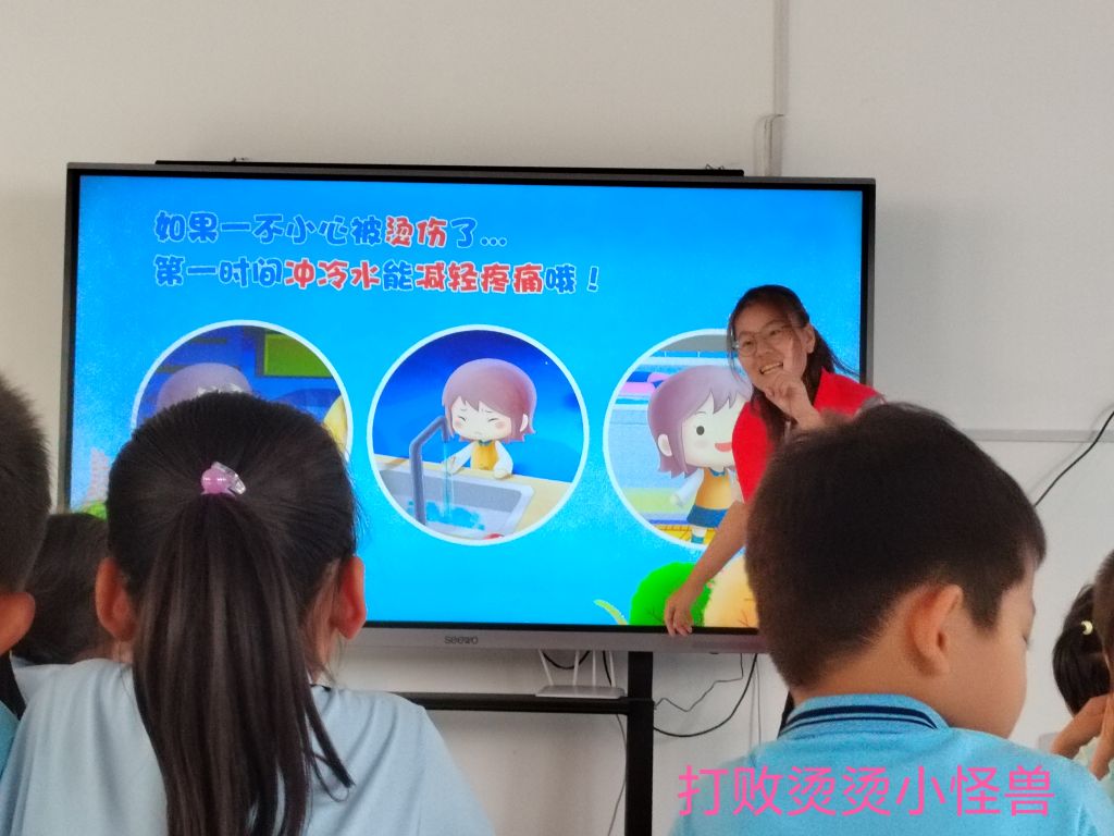 本次活动是安全教育小组活动的第二节“远离烫烫小怪兽”。活动初期,社工通过“你知道生活中有哪些危险源会对我们造成意外烫伤么?你在生活中有没有被烫伤过?烫伤之后是如何紧急处理的?”三个问题引导小组成员初步认识此次活动的主角“烫烫小怪兽”。随后,在充满趣味性的引入环节社工通过烫烫小怪兽演练PPT,带领组员详细认识“烫烫小怪兽”。在生动形象的动画课件里,组员们仔细寻找隐藏在厨房、客厅等日常场景下的烫烫小怪兽,了解家中潜藏的烫伤危险源并学习烫伤急救五步法:“冲”、“脱”、“泡”、“盖”、“送”的具体操作方法。最后,社工与组员一起观看“皮皮的故事”科普动画片,共同回顾整节活动内容,确保儿童在生活中能将此次所学知识进行运用,减少烫伤事件的发生。
