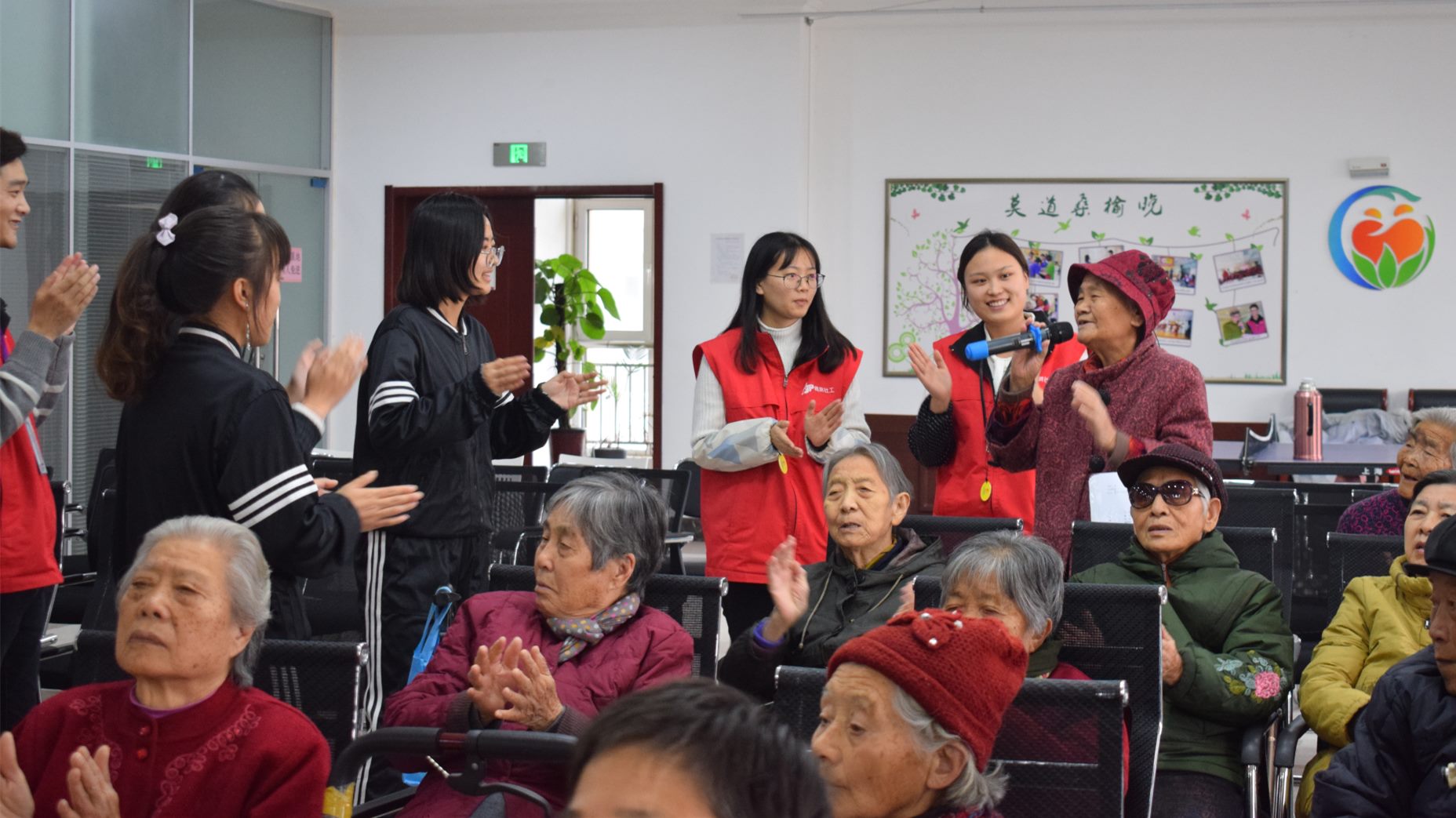 大学生身上的青春气息是非常具有感染性的力量,为了使大学生更加了解老年群体,增强社会责任感,同时使福利中心的住养老人感受年轻人的青春与活力,汲取生命的力量。11月29日众诚悦银龄养老社工项目组链接山东女子学院社会工作协会在福利中心五楼多功能厅开展“青春伴夕阳,共度好时光”文艺汇演活动。