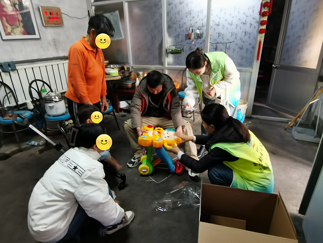 本次入户走访的服务对象之一燕燕(化名),年龄1岁,出生于大桥街道鹊山东社区的一个心智障碍家庭。母亲是心智障碍者,父亲与燕燕心智正常,可以正常沟通交流。燕燕家庭经济条件较为紧张,在社工前期走访中,发现正处于学步期的燕燕没有学习走路的辅助工具,且心智障碍者母亲在日常生活中难以为燕燕提供较为全面的走路指导。针对燕燕的生活实际需求,大桥街道社会工作服务站与鹊山东社区通过鹊山东社区基金平台,为燕燕链接到全新儿童学步车1辆,并在本次入户走访中与志愿者一起组装,完成与燕燕的爱心之约,帮助燕燕在成长之路上学会“行走”,鼓励燕燕在未来走出自己的一片天地。