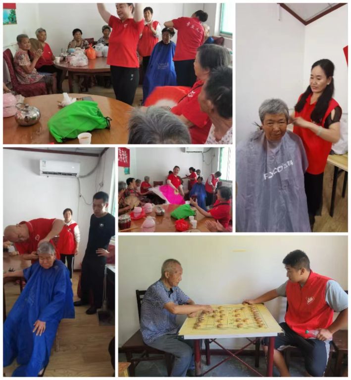 另一边,志愿者为老人们进行了理发,热情的服务和高超的技艺获得老人们的一致好评。之后,为老人表演了经典老歌“东方红”和吕剧“姊妹易嫁”等文艺节目,老人们的阵阵欢声笑语萦绕在餐厅内、笑得合不拢嘴。