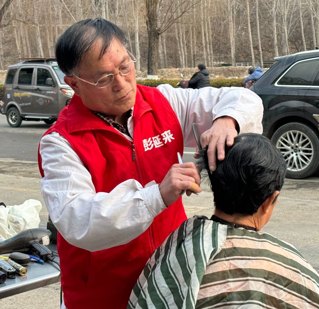 幸福从“头”开始,温暖从“心”出发。一把剪刀、一个推子、一把刮刀,一块围布,西岭角理发店老兵志愿者彭延来在西营大集设置爱心义剪点,为环卫工人和老人免费理发。“上了年纪腿脚不方便,平时就在大集上转转,今天刚好有义剪活动,真是太及时了,剪完感觉自己又年轻了!”陈爷爷摸着刚剪完的银发竖起大拇指对理发师连连称赞。理发技艺和热情态度都赢得了老人们的一致好评,没多久就在轻松的氛围中为老人理出一个个清爽的发型,他们的脸上都洋溢出幸福的笑容。