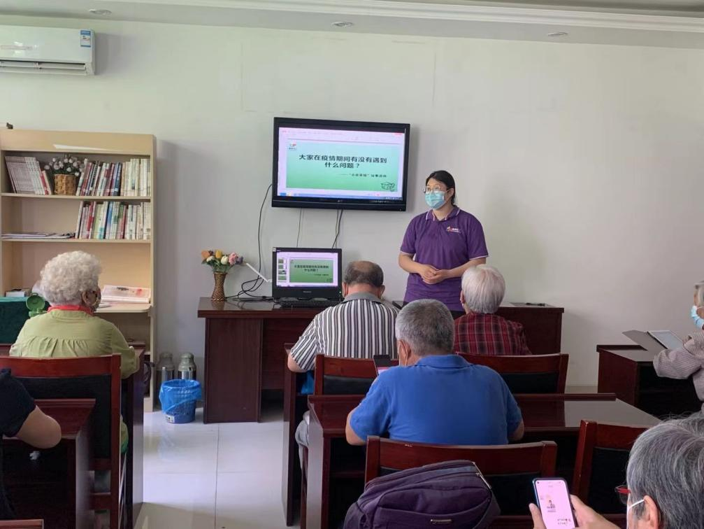 在手机上小组活动的最后,社工跟老人进行了一次名为“疫情期间遇到的问题”的议题讨论,通过与老人的沟通,发现大家出门的时候对于“场所码”的扫描不太熟悉,社工对老人进行了手把手教学,进一步与老人拉近了距离,社工从老年人需求的角度出发,为老人展示了一些简化操作步骤的教学,帮助老年人更快捷地使用智能手机。也有阿姨说等我学会了回去教一教我的老姐妹们,言语中洋溢着自豪感,除了学习到了智能手机知识,更重要的是叔叔阿姨们学会了助人自助,以老助老,通过自己的力量参与到服务社区中来,在服务中提升了自我价值感和自我效能感,让老年生活不再单调。
