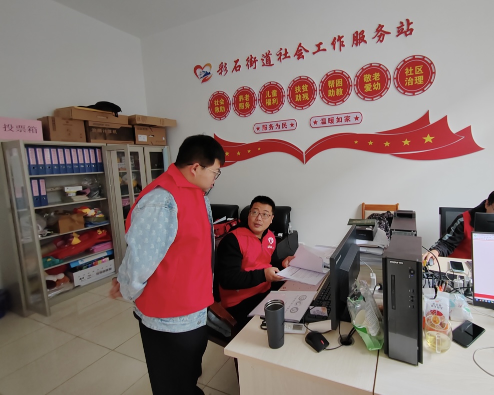 督导过程中,刘相甲就社工站近期示范站整改情况进行点评,对服务过程中遇到的难点和痛点提出针对性的意见和建议。刘相甲翻阅彩石街道社工站服务资料,并认真听取了驻站社工工作汇报,他表示,社工站社工在开展专业服务的同时,相关材料也需要形成服务资料,做好资料整理与专业服务提升共同发展,方便以后总结反思。驻站社工详细介绍了站点的工作情况,并分享了他们在实际服务过程中遇到的困难,如个案、小组如何有效开展等方面的问题还有与居民沟通时存在一定的障碍。针对这些困难和问题,他建议社工站可以加强与其他社会组织的合作,为服务对象链接更多资源,社工本身也要不断加强自身专业水平,将社会工作专业理念和专业方法技巧运用到实际服务过程中。