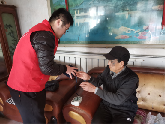 曹范街道社工为老人免费测量血压