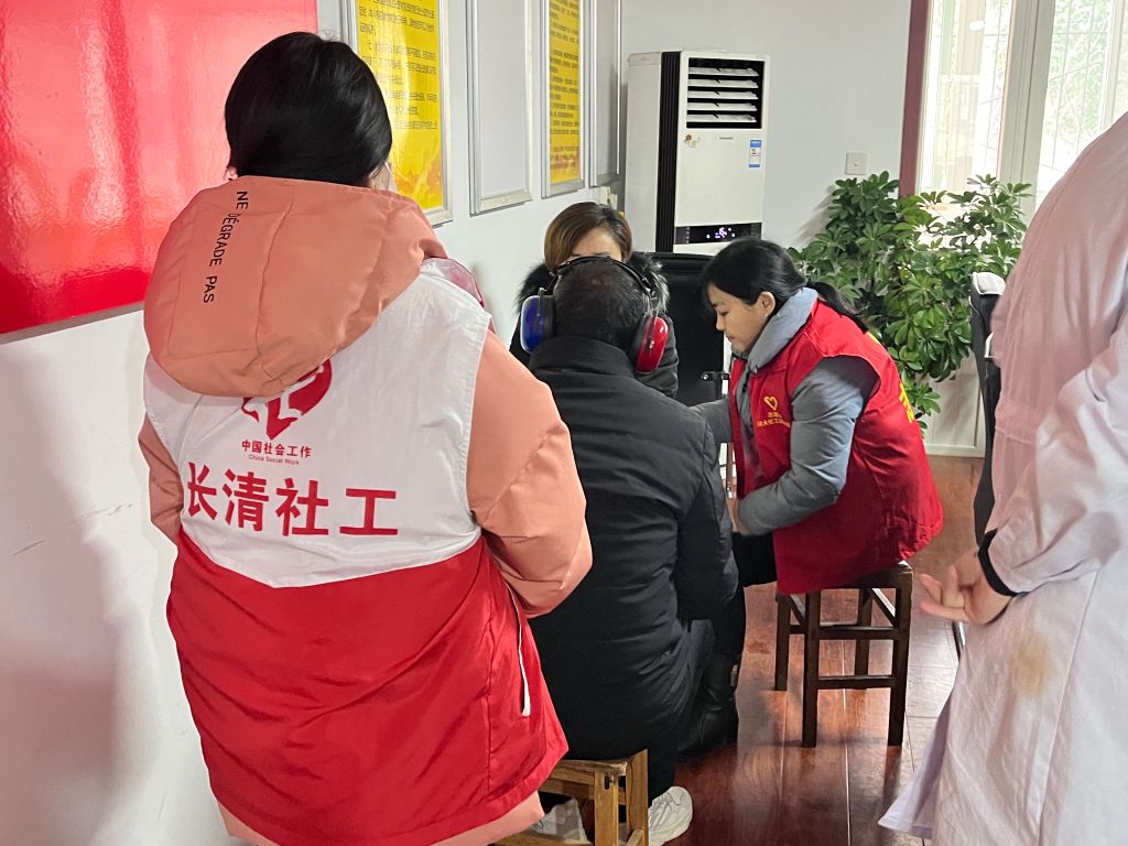 活动当天,志愿者们提前到达现场布置好医疗器材。在义诊环节社工耐心的为前来就诊的居民登记信息,引导居民有序排队。义诊志愿者们分工协作,有序为居民们进行检测问诊。眼科义诊志愿者利用专业检测仪器为辖区居民免费提供视力检查、眼压检查等项目,并根据居民检查结果提出诊疗建议。同时,志愿者也在现场普及眼科保健知识与眼病防护知识,增进辖区居民对于眼部疾病的了解,帮助社区居民养成良好的用眼卫生习惯。在检测过程中志愿者发现很多老人都患有白内障疾病,志愿者向老人们科普国家在2023年出台了白内障手术相关政策。