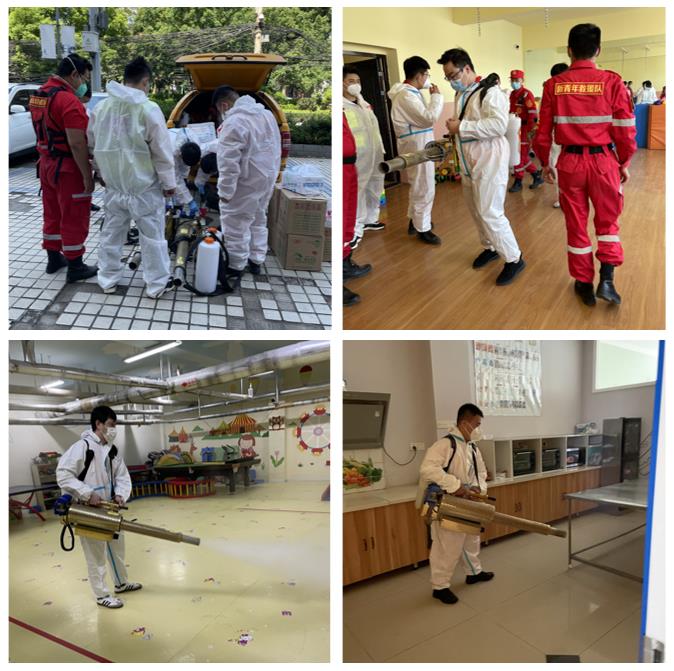 一大早,协会党支部、济南大爱应急救援服务中心党支部志愿者身穿红色马甲和红色救援队服,先后来到济南市博爱儿童康复中心、济南天翼儿童特训中心、济南市智上儿童康复中心。志愿者们穿上防护服,佩戴防护口罩,身背弥雾机等专业消杀设备,严格按照卫生消杀管理标准进行规范操作,对走廊、教室、食堂、活动室、卫生间等场地进行了全方位消毒。特别是门把手、楼梯扶手、桌椅等身体密切接触的地方,志愿者们更是进行了密集式反复消毒,防护服下的志愿者们汗流浃背,但他们没有一丝懈怠,认真执行消杀作业,不遗漏任何死角,确保为儿童康复训练和复学提供一个安全健康的环境。
