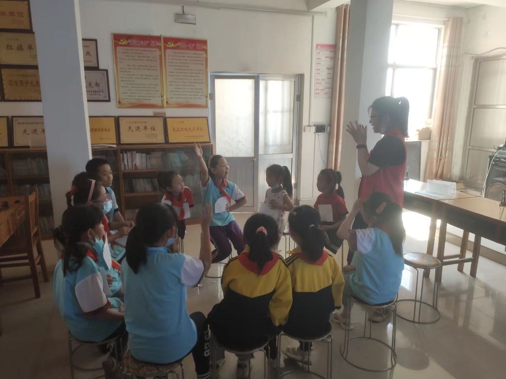 活动开始,为了让小组活动能更好地、更有效地进行,社工与组员共同完成了小组协议的制定。接着来到了破冰游戏“萝卜蹲”环节,社工邀请孩子们围坐成一圈,为了组员相互认识,在每个孩子的衣服上都贴有自己名字的A4纸,随后一人一组开始按游戏规则进行“萝卜蹲”,孩子们在游戏中都积极地做自我介绍,很快就互相熟悉了起来,点燃了组员参加活动的积极性。通过游戏互动,更加提高了社工与组员间的熟悉度。