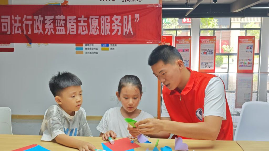为了丰富儿童的暑假生活,同时促进农村社区建设与大学生志愿服务的紧密结合,近日,济南市槐荫区吴家堡街道社会工作服务站(以下简称:吴家堡街道社工站)联动山东司法警官职业学院司法行政系蓝盾志愿服务队的志愿者们面向辖区儿童开展了一场别开生面的手工活动,旨在引导儿童体验手工制作的乐趣,锻炼儿童的耐心和动手能力,促进儿童全面成长。