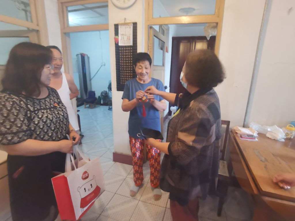 6月20日-6月21日,社工、社区工作人员、社区社会组织、社区志愿者共同走访辖区的高龄、独居、孤寡老人,将节日祝福传递给6名不能到场参加社区活动的困境老人。社区工作人员作为代表将粽子、艾草送给困境老人,询问他们高龄补贴、最低生活保障金等补贴的落实情况;社工通过陪伴疏解老人的情绪困扰,识别服务对象的个性化需求,为具有需求的老人建立服务档案;社区社会组织成员和志愿者们与老人交流日常生活话题,通过同辈交流减轻老人的社会疏离感。社工充分发挥在五社联动中“穿针引线”的作用,动员多方力量共同关注困境人群,实实在在为困境人群排忧解难,切实增强了困境人群的生活幸福感,让每一名社区居民都能够共享社区发展成果。