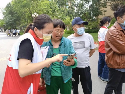 站点利用核酸检测期间进行义诊活动,前来问诊的老年人络绎不绝,在社工的引导下有序排队,主动配合医生的检查。医生为老年人测量血压、中医问诊、健康知识咨询等检查,医生根据血压测量、中医问诊结果针对性地讲解如何通过改善饮食及生活习惯来提高身体健康水平,提醒大家平时要保持清淡饮食、加强体育锻炼。