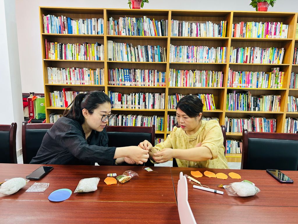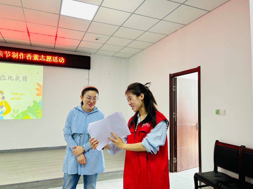 社区工作者通过协力合作制作香囊