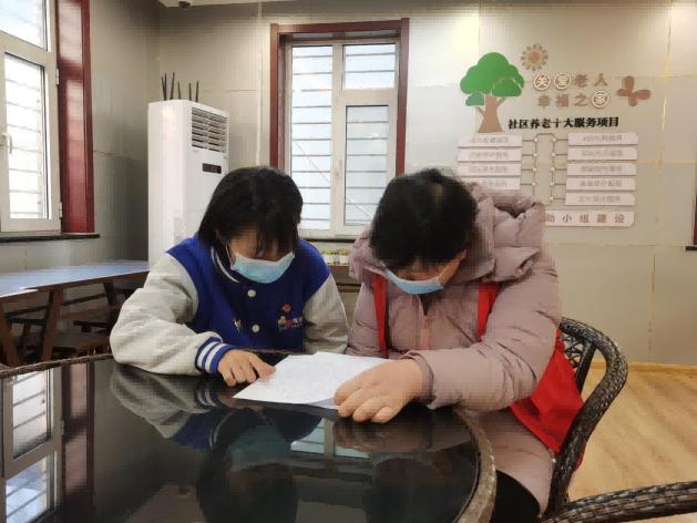 (社工与志愿者一起对居民进行宣传)