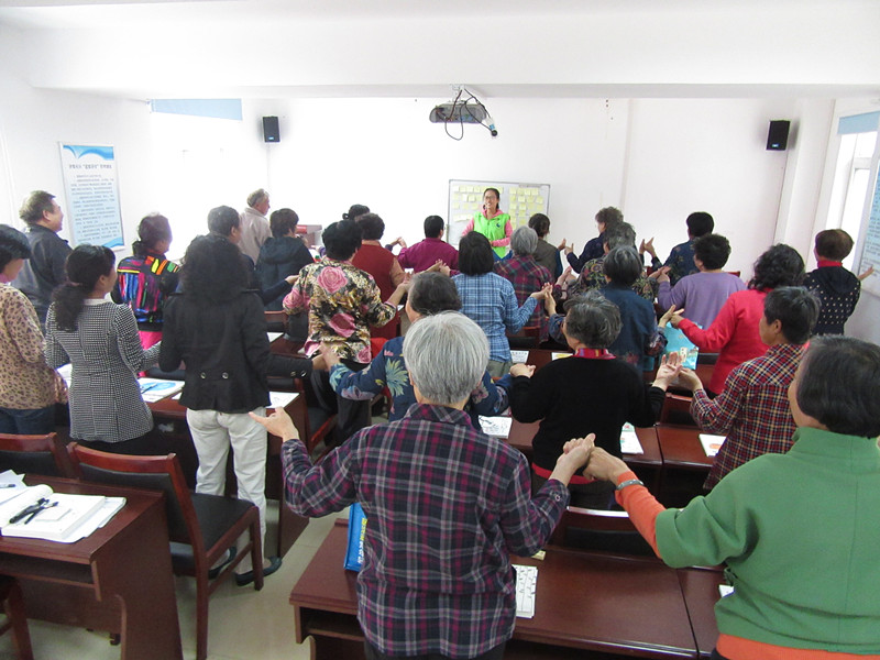 接着,社工带领老人做热身活动“阿三的故事”,欢笑满堂,不仅活跃了课堂气氛,更促进了老人间的交流和互动。