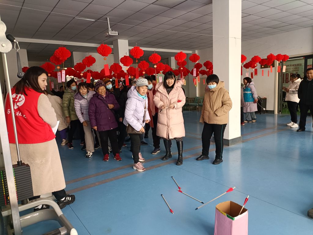 在传统游戏环节中,居民们都兴致勃勃、井然有序的参与游戏,投壶求“福气”、夹住团圆豆、套中平安节等活动,吸引了不少居民的眼光。投壶活动前大家井然有序的排好队,你一言我一语讨论套路,玩得不亦乐乎。居民在玩游戏的过程中,感受到浓浓的节日气氛,弘扬了中华传统文化。社区居民不仅可以体验传统民俗游戏的乐趣,在比拼中回味童年,在社工的讲解下,在欢乐之余进一步了解传统文化。在猜灯谜环节中,居民们围绕着灯谜争先恐后地看谜面、猜谜语,大家你一言我一语的举手抢答,答对的,大家掌声雷鸣表示鼓励,没抢答上的也不气馁,继续互相讨论出谋划策。