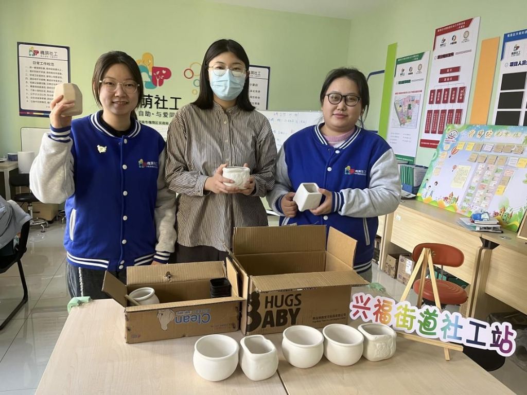 “你们好,打扰了,我是刘奶奶的孙女小李,我奶奶说她是社工站的志愿者,让我送些东西过来”,正当社工稍显困惑之时,两箱满满的花盆胚体就递到了社工手中。社工了解到指尖生花志愿服务队的刘奶奶由于近期身体原因无法参与到服务活动中,但一直挂念着社工及队员,因为之前参与过绘制花盆、认领绿植的志愿服务活动,因此想在早春之际,让社工带领更多的志愿者继续把志愿服务传递下去,就委托自己的孙女来到站内,以新的形式参与到志愿服务活动中,社工也让小李代替刘奶奶在“全民社工”积分卡中累计上了志愿积分,新一轮的手工+志愿服务也随之启动。