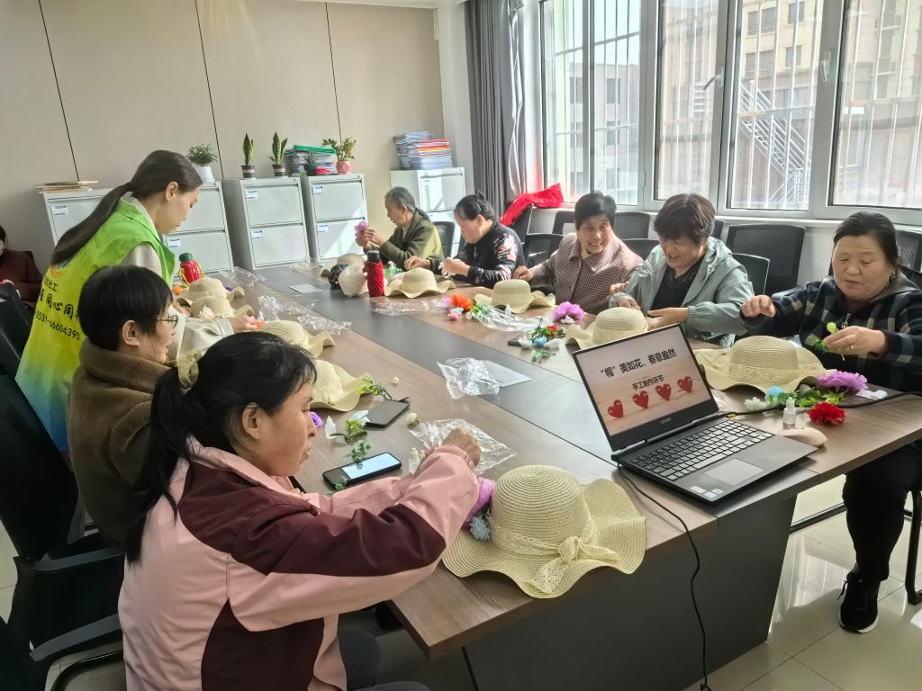 “帽”美如花,春意盎然——大桥街道社工站开展“逐光汇暖,艺有所成”手工志愿小组