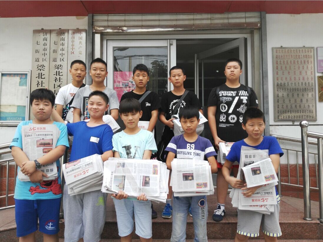 为了锻炼青少年的课外实践能力,丰富暑期生活,成长青轨线项目组社工组织梁北社区的小朋友在社区内分发社区报。2016年8月8日上午10点,暑期班的10位小朋友主动参与到义务劳动中,小朋友们这种志愿服务的精神得到居委会全体工作人员的认可和赞扬。