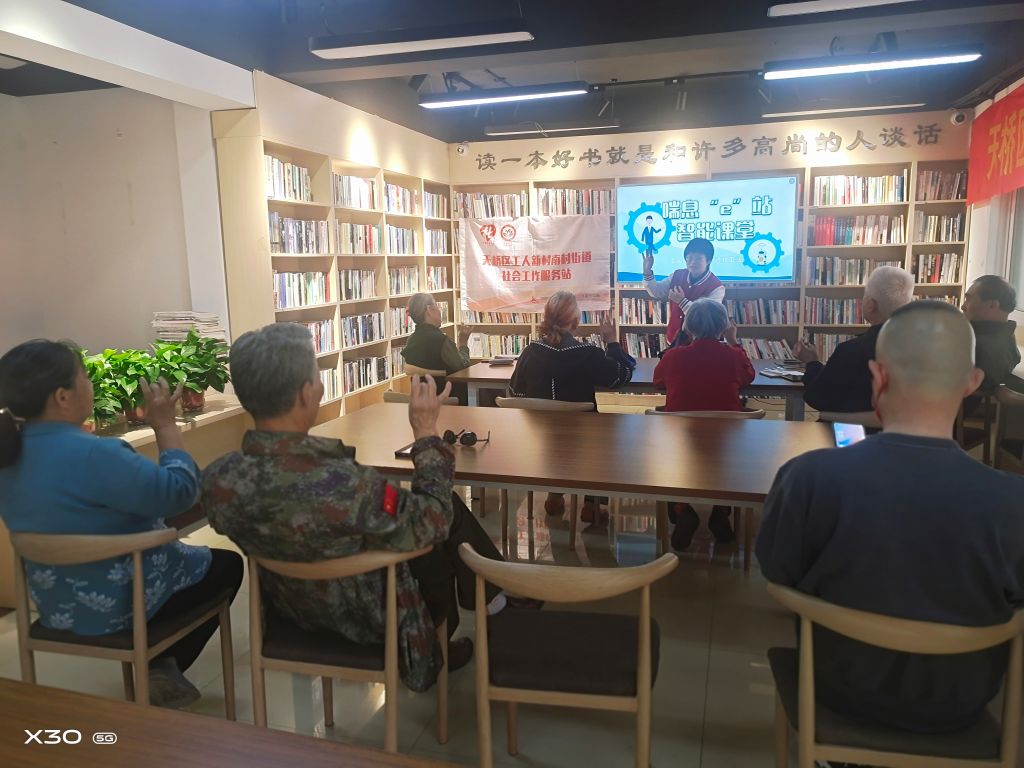 为了帮助老年人更好的融入智能时代,享受科技生活带来的便利,为老年人与其子女架起沟通的桥梁,4月17日,南村街道社工站联合街道公共文化办公室开展“小手机 大世界 促交流”智能手机学习活动。推进“‘幸福家园 慈善先行’新时代街道社区互助项目”服务。
