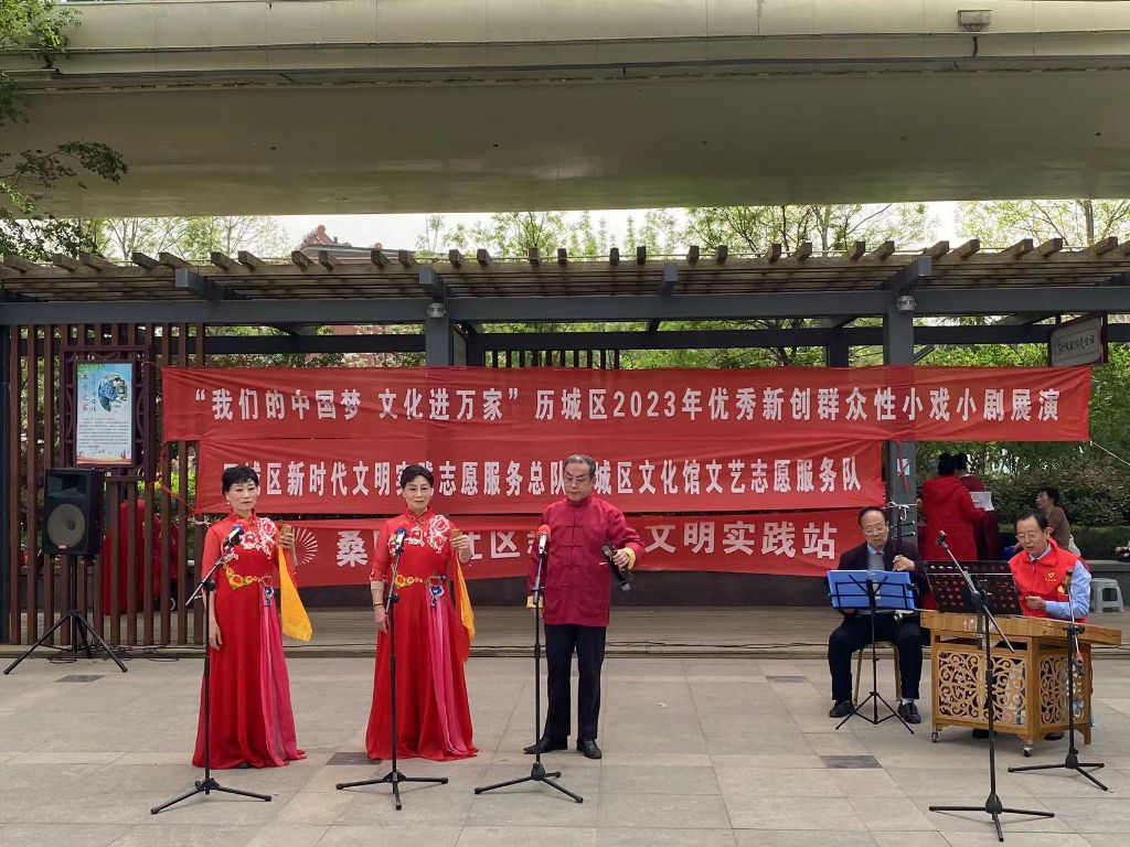 为进一步丰富辖区老年人的精神文化生活,进一步开展以提高老年人精神文化为中心的社会服务,4月12日上午,全福街道社工站联合街道文化站,链接济南市吕剧院举办以吕剧为主题的传统活动,引进传统文化融入社区生活,丰富文体康乐服务供给方式,在桑园北社区睦邻广场广场开展了“我们的中国梦 文化进万家”历城区2023年优秀新创群众性小戏小剧展演。