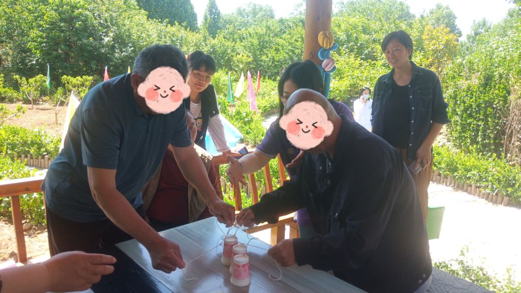 趣味互动,促进残疾人社会融入。在活动现场,社工站社工联合志愿者,结合新庞村实地资源,就地取材,通过互动小游戏、趣味小发明等互动,带领残疾人体验“科技”的乐趣,安全性高、趣味性强、操作简单的游戏项目吸引了在场残疾人的积极参加,他们在志愿者的辅助下全身心投入,享受着游戏带来的乐趣,展示着其自尊、自信、自立、自强的精神风貌。游戏过程中,残疾人与志愿者互相帮助、互相鼓励,活动现场气氛温馨融洽,其乐融融。