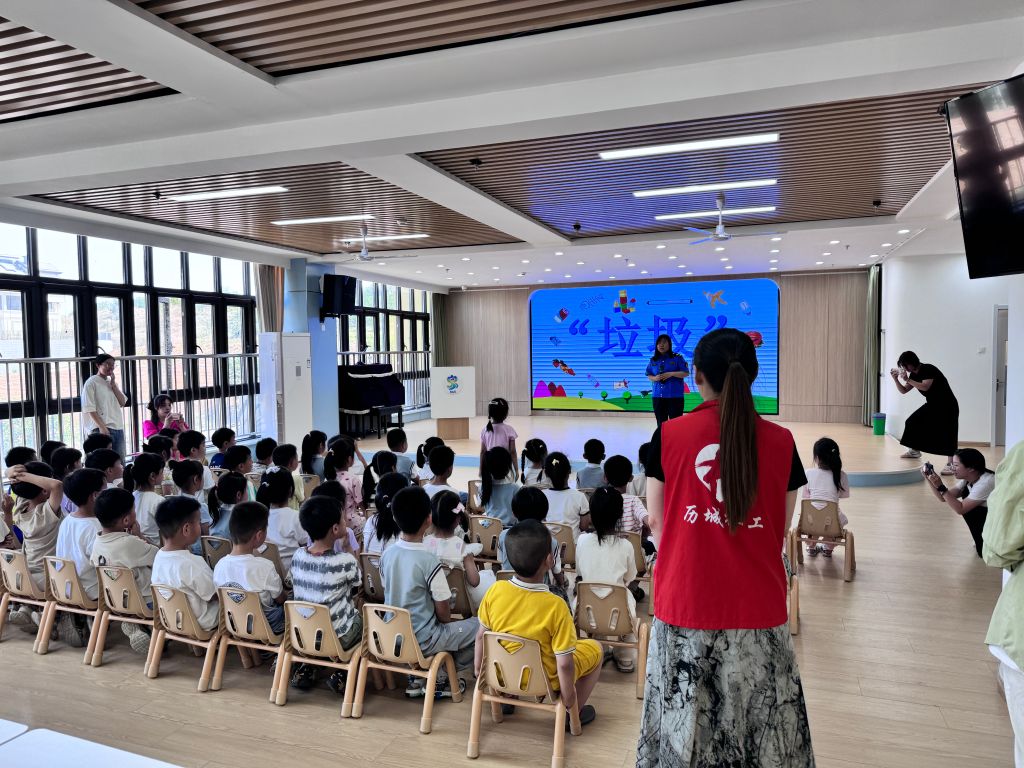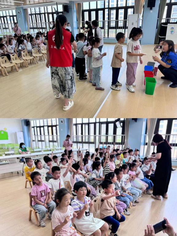 活动邀请街道生活垃圾分类办公室工作人员通过PPT讲解的形式,详细讲解了什么是垃圾分类、为什么要进行垃圾分类、垃圾如何分类等相关知识。并通过小游戏,使孩子们化身为垃圾分类小能手,将带有不同垃圾的图片投放到不同类别的垃圾桶中,以寓教于乐的方式加深孩子们对垃圾分类知识的了解和掌握。