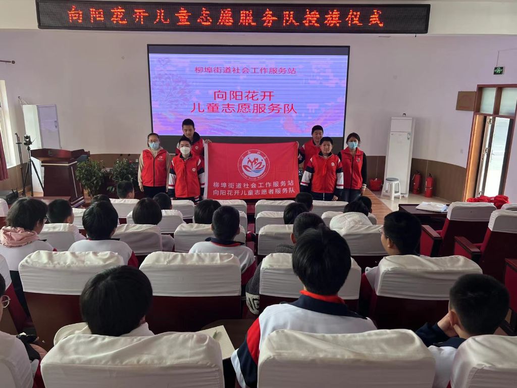 青少年是祖国的未来、民族的希望。3月8日上午,柳埠街道社工站在柳埠中学举行了“向阳花开”儿童志愿服务队授旗仪式暨儿童志愿服务活动。这是柳埠街道第一支儿童志愿服务队。