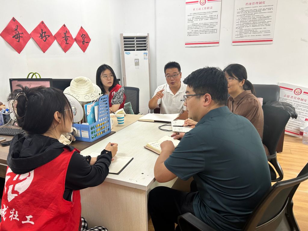 为巩固社工站前期服务成效,继续推进社工站建设,明确接下来工作方向,8月20日,济南山青社会工作服务中心副总干事刘相甲、山东青年政治学院马青萍老师以及济南市高层次人才(市级领军人才)、济南市社会工作督导人才库成员孙浩老师一行来到董家街道社工站开展实地督导工作。