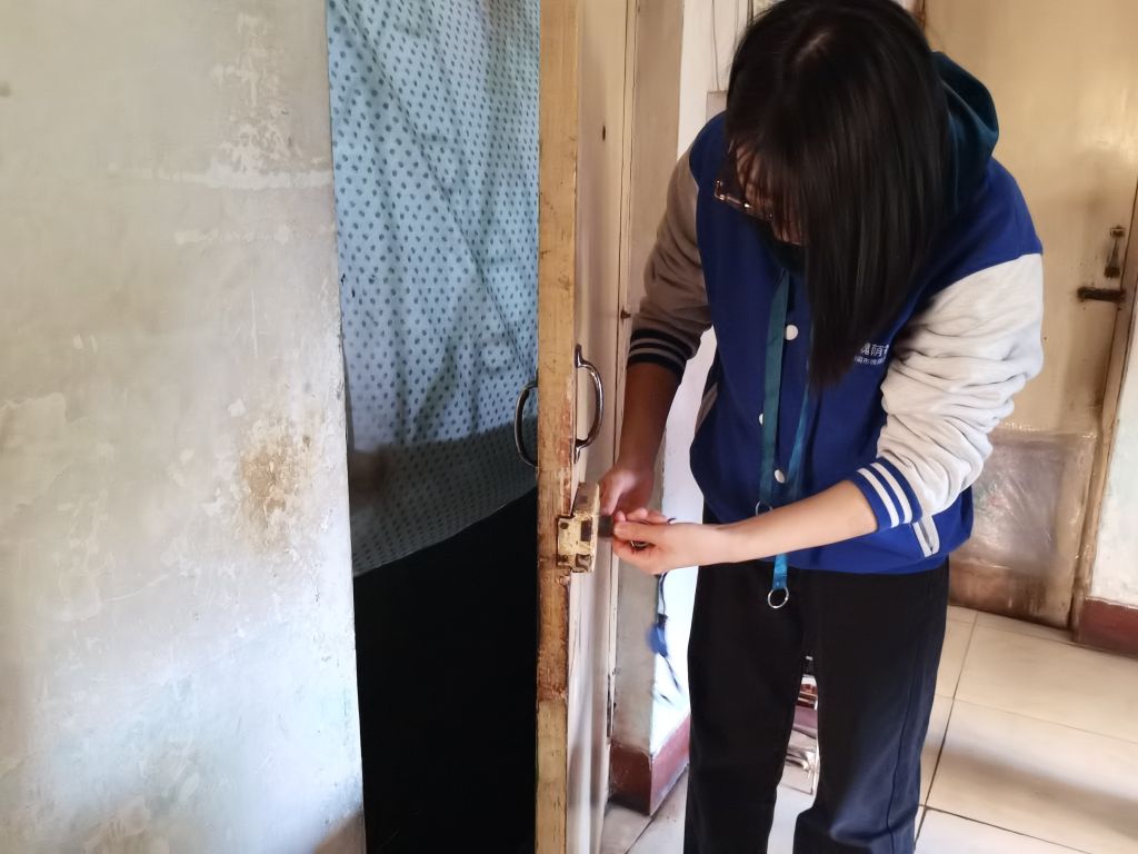 社工用携带的工具为吴奶奶修理好了门锁,吴奶奶在社工的搀扶下试了试修理后的门锁,“确实比之前好用多了,有时候开不开门,我就着急,这年龄也大,越着急越开不开门,这下好了,以后开门就方便多了。”解决吴奶奶的问题后,社工叮嘱老人“以后如果遇到什么问题和困难就给我们打电话,我们如果能解决的就自己帮您解决,如果解决不了的我们也会积极拓展各项资源,为您提供支持。”