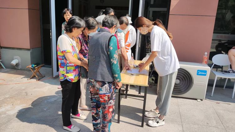 上午9点,社工早早地来到了滨河社区居委会,抬桌子搬椅子,布置好现场。担心老人们找不到理发场地,社工走到小区挨个通知楼下的老人们。不一会儿,老人们陆陆续续到来。