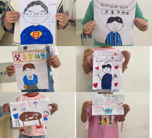 接下来,社工引导孩子们拿起手边的画笔,画出自己心中的“爸爸”,孩子们认真的画出爸爸的“模样”,给他“理好发”、系上精致的领带,并写下自己对父亲的祝福和期盼。“帅气”的爸爸是孩子对爸爸的颜值最给力的评价;“超人”爸爸是孩子对父亲能干神勇的称赞;“烧烤师傅”爸爸总是给家人烤出最美味的肉串……爸爸们用他独有的温柔、细腻、体贴温暖着家里的每一位成员,孩子们用画笔用心地诠释着自己心中那个独特而伟大的父亲。我们相信当父亲们收到孩子用情、用爱亲手准备的礼物时,一定是感动的、是温馨的、是幸福的。