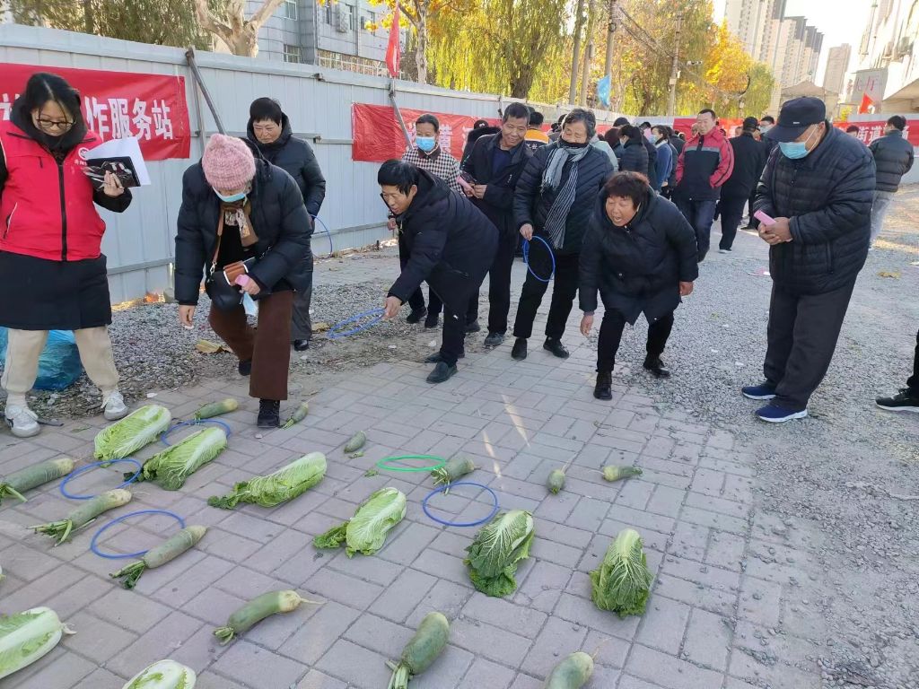 套圈活动现场,大家个个热情高涨,充满了欢声笑语,套中的居民手中拿着蔬菜,开心的说到:“这个实惠,回家可以做好吃的了。”大家纷纷表示希望我们今后能多举行一些此类活动丰富业余生活。游戏虽简单,礼轻情意义重,但就是这些简简单单的东西让大家在寒冬之中感受到温暖,实现社区居民心连心。