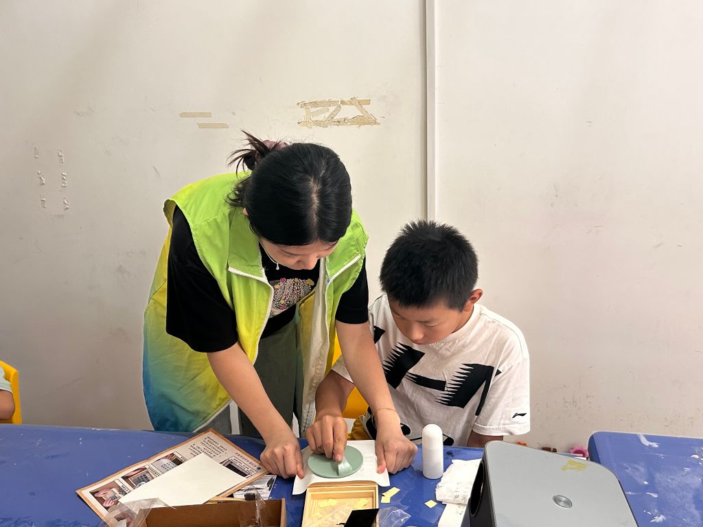 随后,活动进入了高潮部分——活字印刷术的体验。社工首先向孩子们介绍了活字印刷术的历史背景和重要性,让孩子们对这一传统文化有了初步的认识。接着,社工亲自示范了活字印刷的操作流程,每一个步骤都讲解得细致入微。孩子们围在社工身边,目不转睛地观察着,生怕错过任何一个细节。