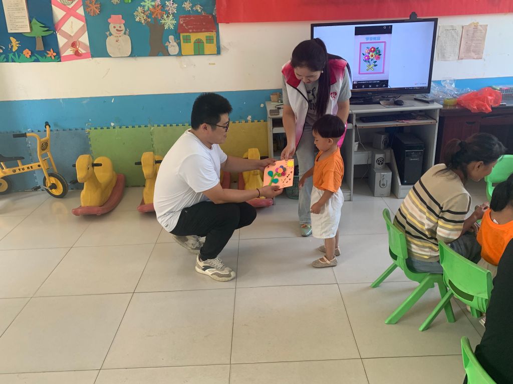 活动开始,社工和志愿者分发手工材料,讲解制作的步骤。小朋友们和家长一同跟随社工和志愿者的节奏裁剪,折叠,布局,包装,认真地做好每一步,将真诚的情感融进这个作品中。在社工和志愿者的引导下,小朋友们发挥自己的智慧,想象力,创造出最美的作品,献给他们最敬爱的老师们,感谢老师的无私奉献,默默耕耘。