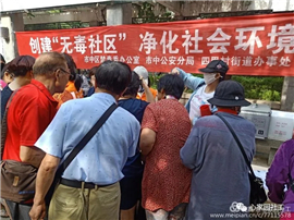 为全面贯彻落实市中区区委、区政府全民禁毒工程工作,广泛发动群众参与社会治理,深入开展毒品预防宣传教育,形成自觉抵制毒品的浓厚氛围。在第三十三个国际禁毒日到来之际,四里村街道心家园项目组于6月19日上午9时,在英雄山北广场开展主题为“创建无毒社区,净化社会环境”暨“6.26”国际禁毒日宣传活动。