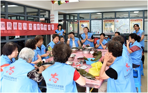 2016年6月7日上午,奥体西苑社工项目组在社区二楼活动室开展了以奥体西苑社区与您“粽情相约”为主题的端午节活动,与社区居民一同庆祝端午节。