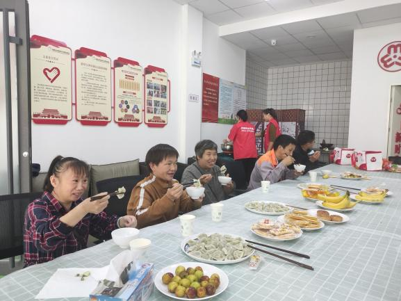活动现场,大家欢聚一堂,喜迎中秋。社工为大家精心准备好了面粉、馅料、手套、模具等材料,还为到来的残疾人朋友准备了水果和零食。大家自己动手,在社工和志愿者的指导帮助下,相互交流,相互探讨月饼的做法。揉面团、擀面皮,团馅料、包月饼、压模成型,大家纷纷大显身手,将中秋的美好祝愿,对幸福未来的期许,包裹在小小的月饼中。在阵阵欢声笑语里,一个个小巧玲珑、可爱美味的月饼逐渐成形,残疾人朋友们兴高采烈地展示着自己的杰作,看着自己的劳动成果,每个人脸上都洋溢出幸福的笑脸。活动最后,残疾人朋友们还将美味的月饼带回家中,和家人们一起分享品尝。