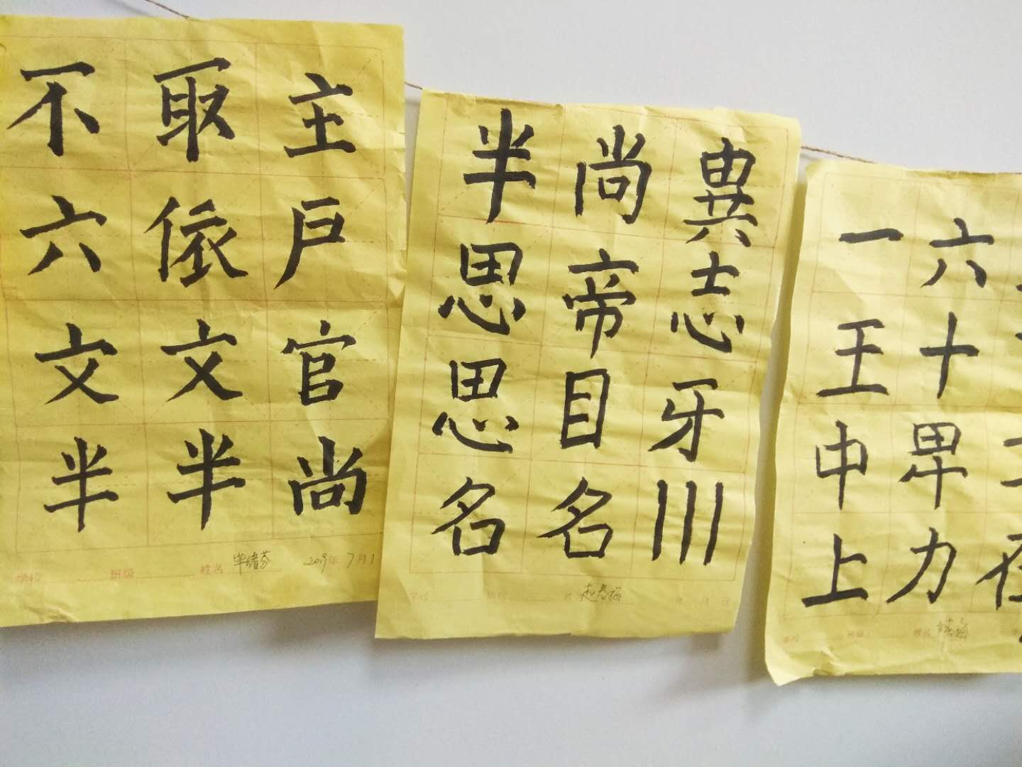 上周拭目以待的书法班作业,在7月1号闪亮登场了。我们先欣赏一番。是不是很有书法韵味,这是组员们练习一月就达到的效果,是不是很厉害,有没有动心想练练书法。