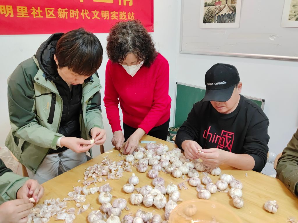浓香腊蒜,岁岁平安。为做好本次活动,社工和社区工作人员还提前准备了优质大蒜、醋、密封瓶等材料。志愿者们早早地来到社区活动室,默契配合着,分享着腌制腊八蒜的技巧,大家一边聊着家常一边制作。在阵阵欢声笑语中,一瓶瓶腊八蒜便制作完成,每一瓶腊八蒜中都传递着浓浓的邻里亲情。