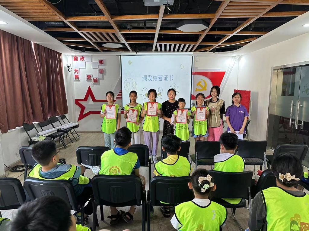 腊山街道和泉景园社区、腊山南苑社区为本次暑期成长营提供场地、人力支持,社工特邀泉景园社区党永乐书记为代表在结营仪式上为儿童颁发结营证书。以此鼓励和肯定儿童积极参与暑期成长营各项活动,遵守儿童见面会上共同制定的契约,发挥自身力量使暑期成长营顺利开展。