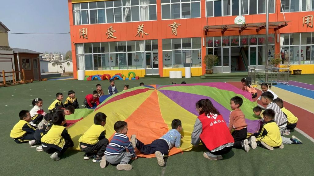 在轻松愉悦的气氛下,社工带领小朋友进行《彩虹伞》游戏,开始之前社工跟小朋友们讲好游戏规则,社工引导孩子尝试多种方法跟随音乐把彩虹伞运用成“大波浪、小波浪、蒙古包”等基本技能。通过教学活动培养幼儿对彩虹伞的兴趣,体验了合作的快乐。